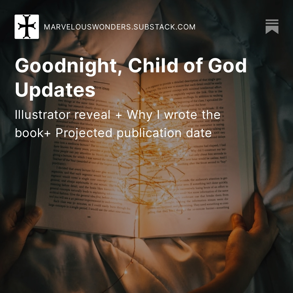 “Gorgeously illustrated and full of sacred truths in charming rhymes, Goodnight, Child of God is a welcome addition to our bedtime corners and evening rhythms.”